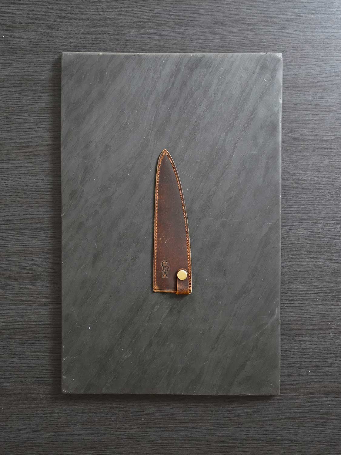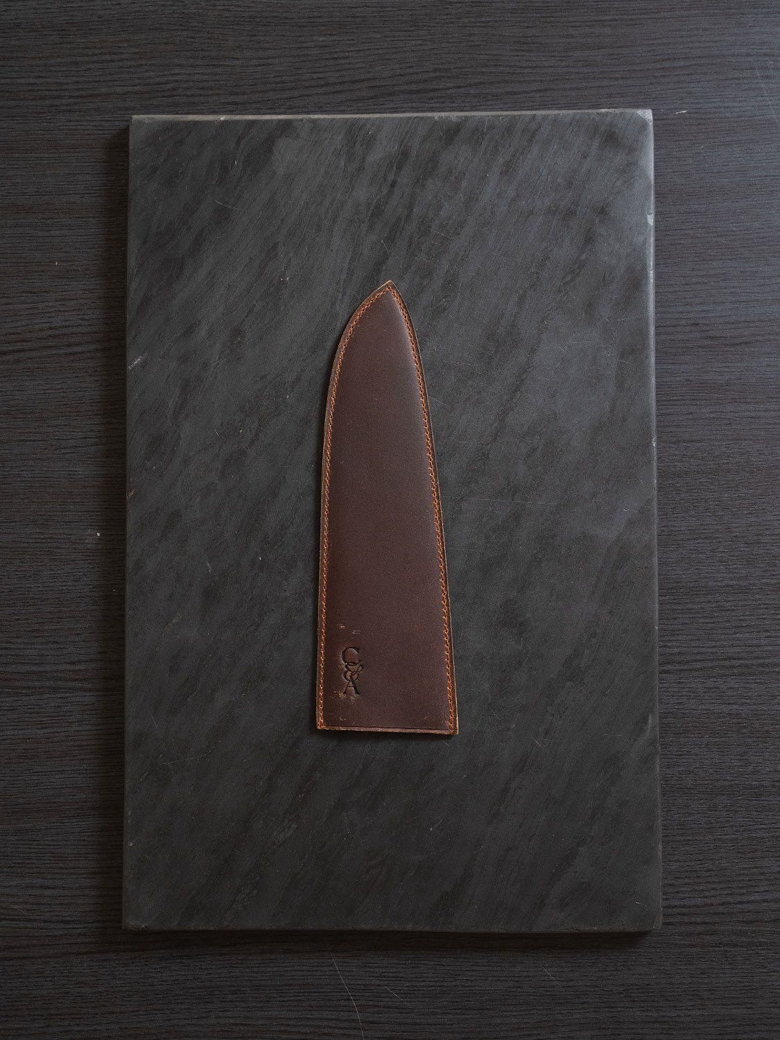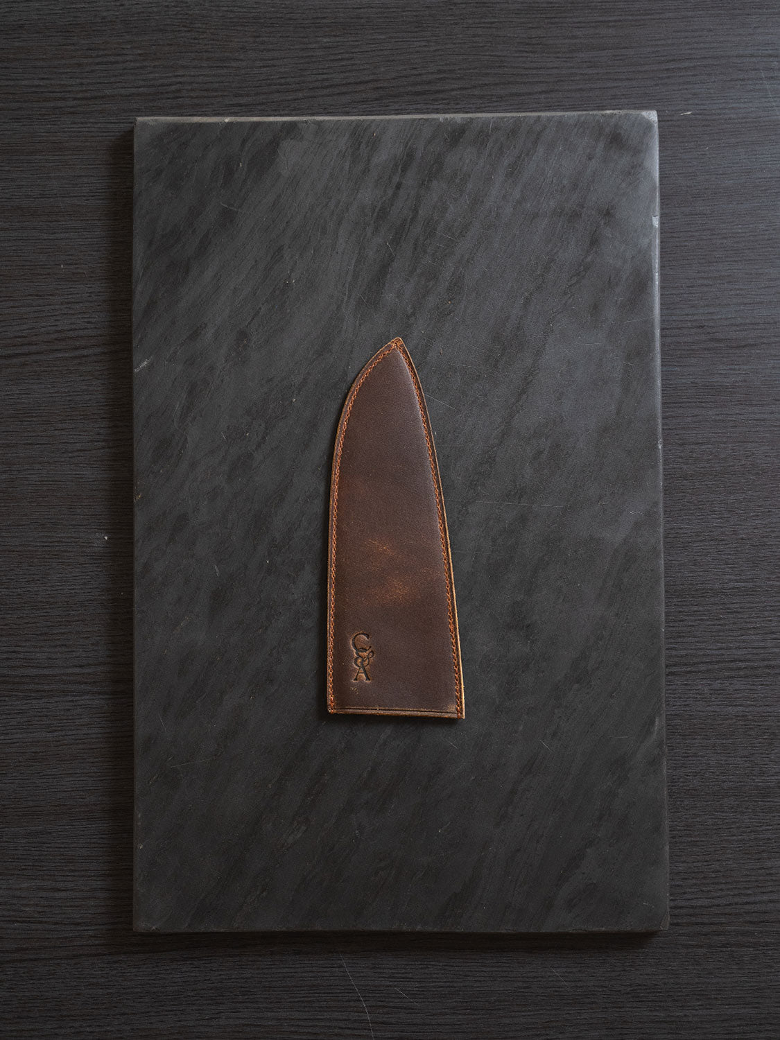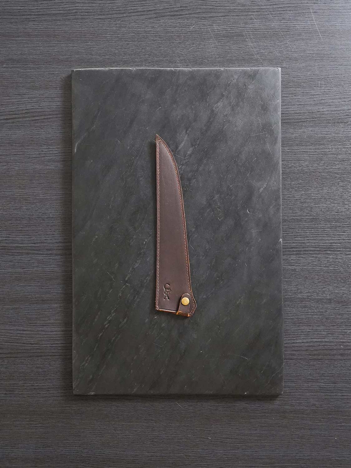 The best thing you can do for a carbon steel knife is protect it. Premium buffalo leather. Custom cut for each knife in the range. Tight stitching. Snug fit. Built to keep your blade safe when it's not in your hand.