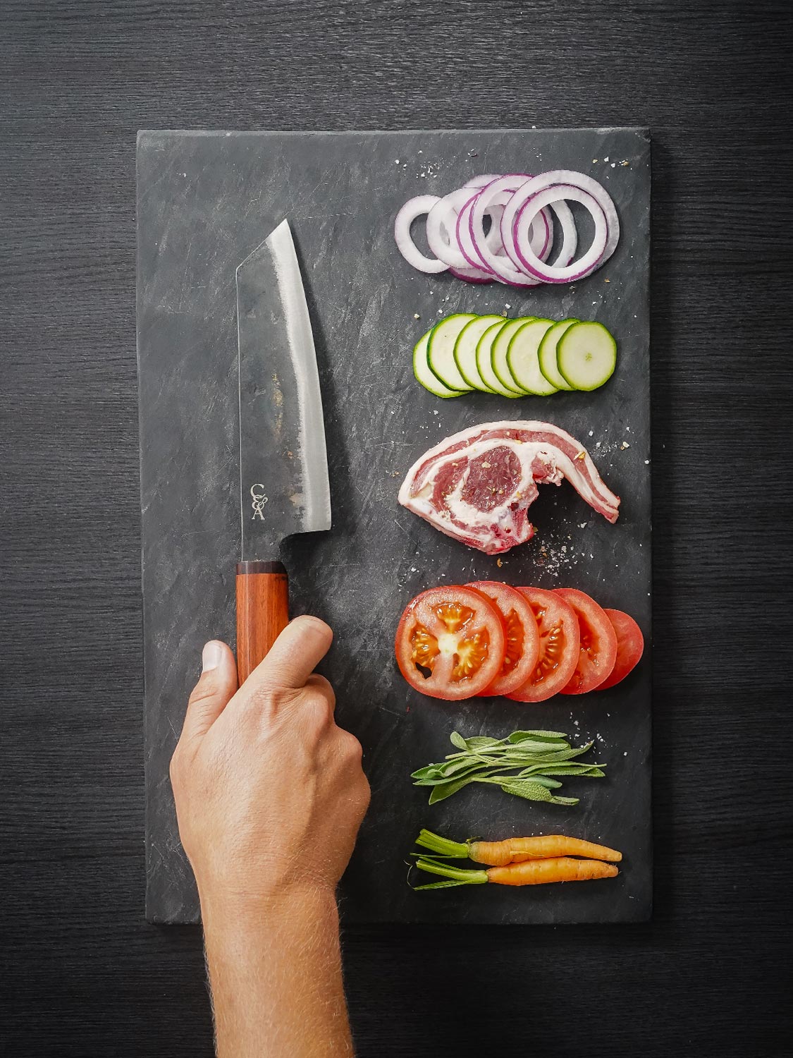 Sharp, balanced, and built for detail. Ezekiel is a beautiful Bunka knife that handles everything from veg to meat with style and ease.