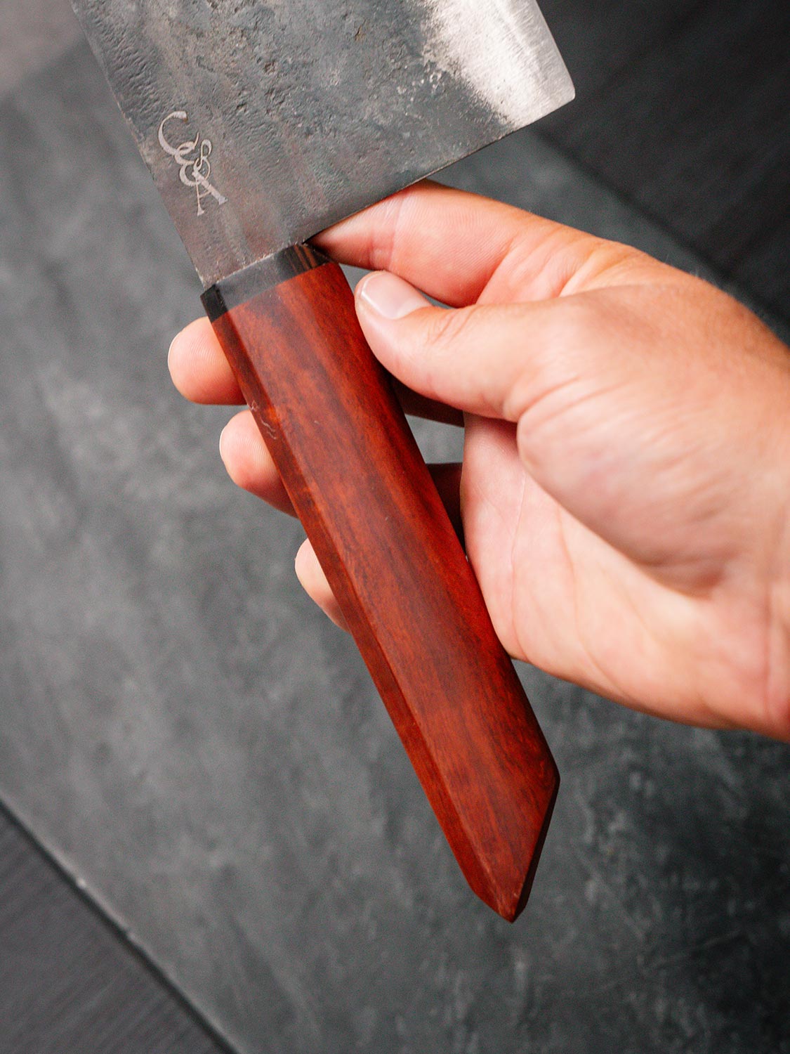 Dry your knife after each use to prevent rust. Oil the carbon steel using a food grade mineral oil. Avoid soaking & never put it in the dishwasher. For full care tips, visit: Knife Care Guide →