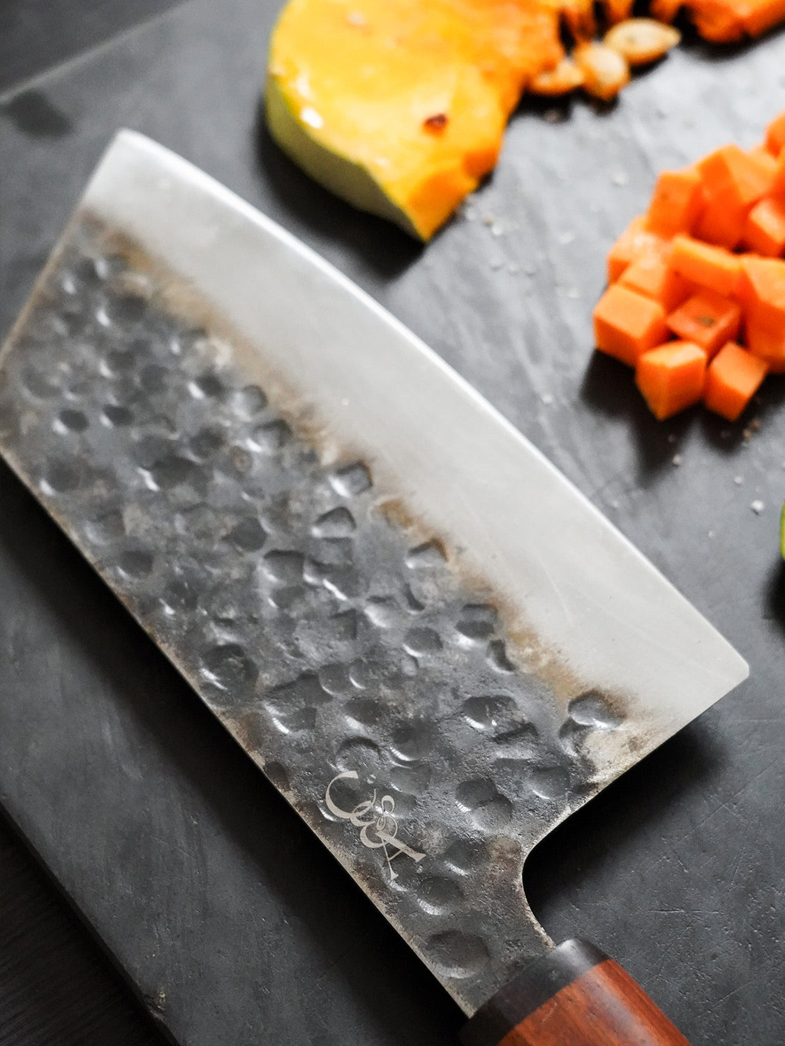 Bold, balanced, and beautifully hammered. Noah is the versatile kiri cleaver that slices big and small with rhythm and style.