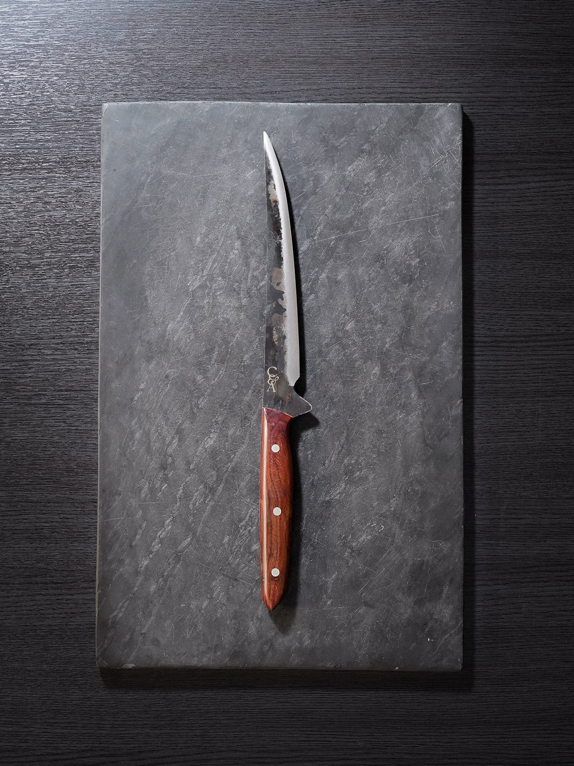 Crafted from hand-forged 52100 carbon steel, it’s sharp, flexible, and beautifully balanced. It feels light and natural in your hand. Turning delicate filleting into a smooth, satisfying rhythm.