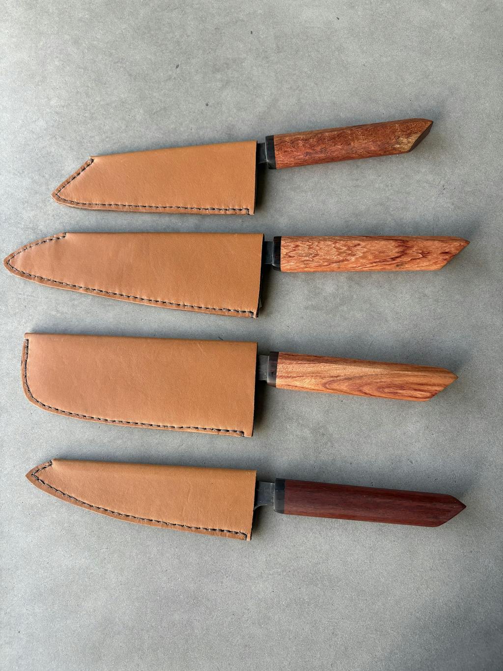 Padauk. Padauk is a strong hardwood known for its rich colour and toughness. It has a natural reddish tone that darkens beautifully over time. Because it’s dense and durable, Padauk makes a great knife handle. It holds up to everyday use, feels solid in your hand, and looks better the more you use it. It’s a mix of strength, beauty, and comfort.