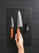 Eve is our hammered petty knife. Sharp, compact and agile. Perfect for slicing fruits, trimming herbs, segmenting citrus and all the precision work that matters.More on this knife here.