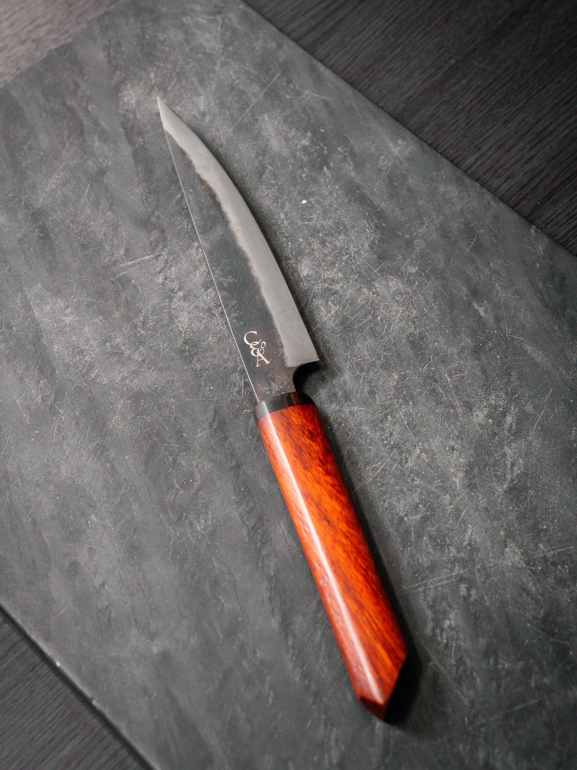 Our Joseph is a workhorse. The famous Japanese Santoku knife shapes that's known to be a knife that covers you for everything.More on this knife here.