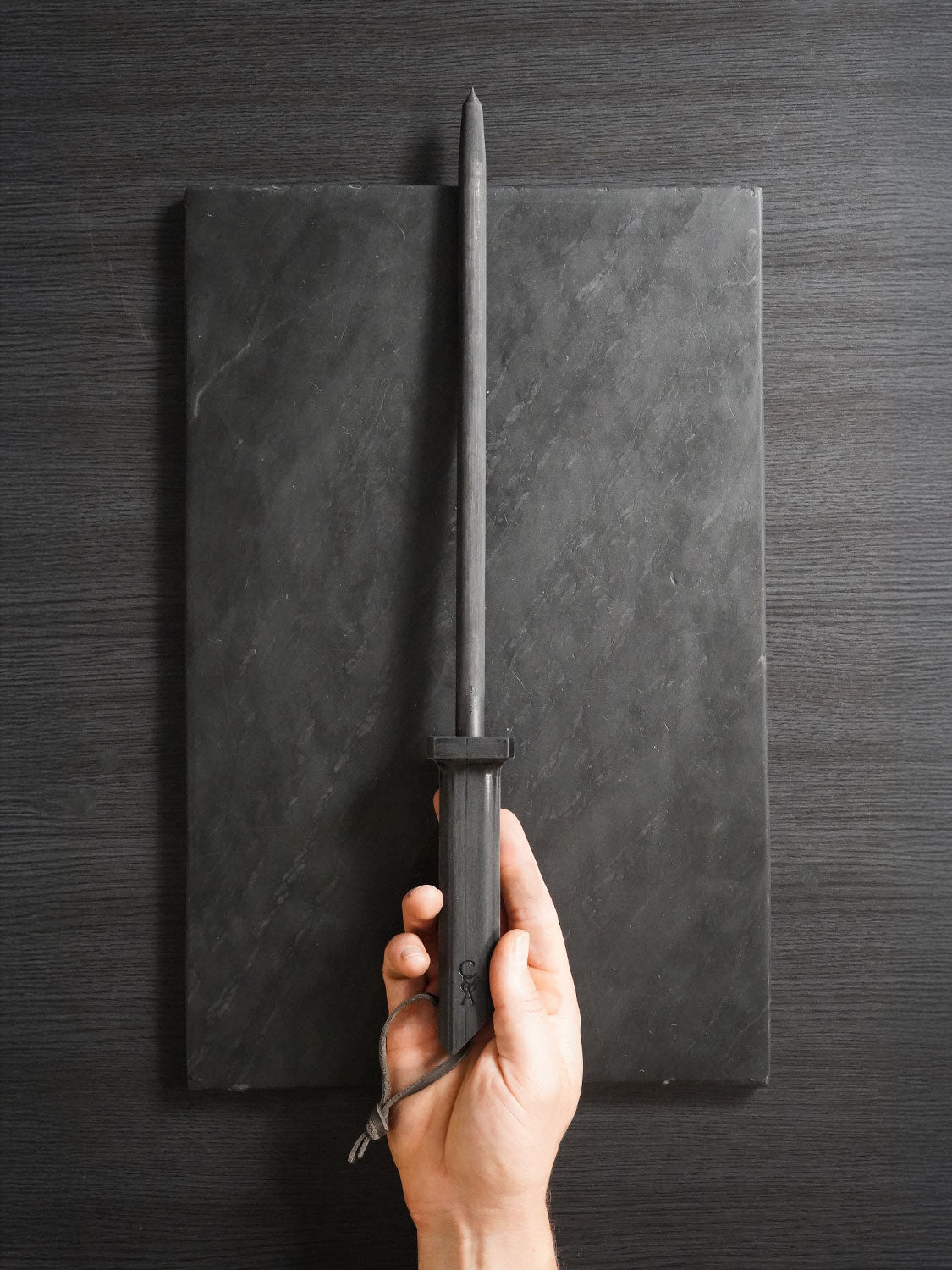 This honing rod is made from hardened tool steel, then treated with a black nitriding process for better corrosion resistance and a longer life in the kitchen. It features a number 5 cut designed to true the edge of your knife, not sharpen it. That’s the key to keeping your blade sharp between proper sharpening sessions.