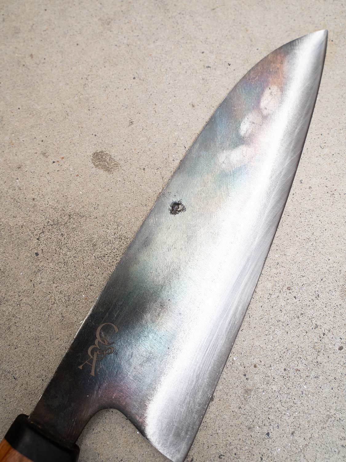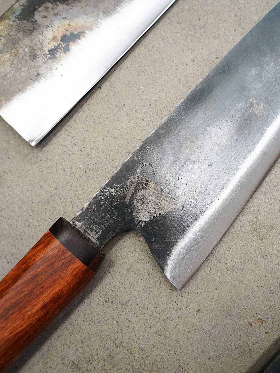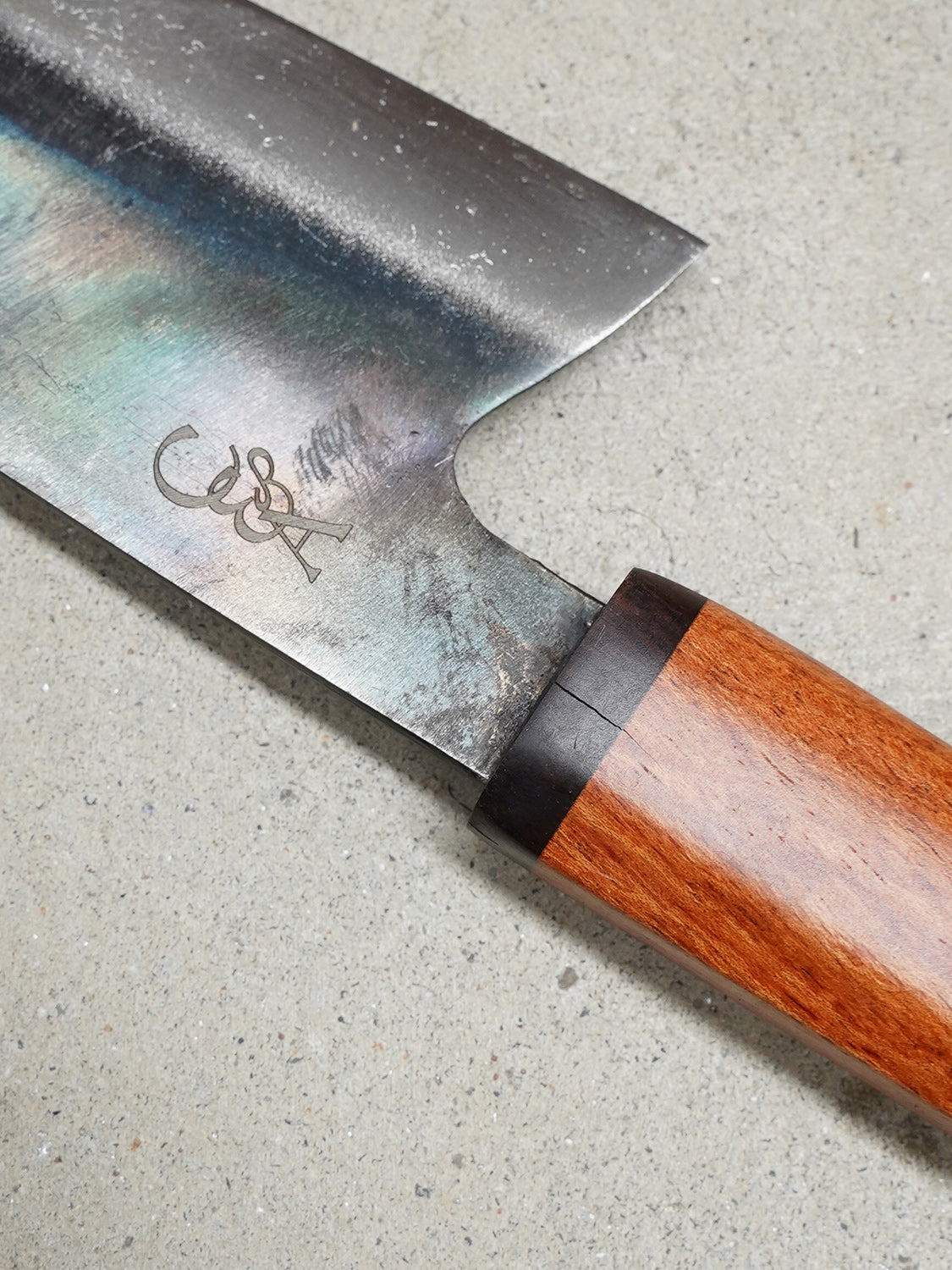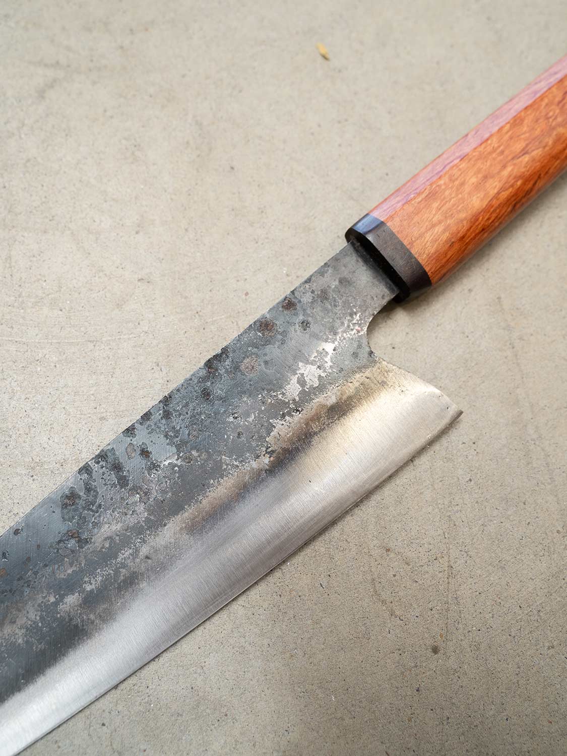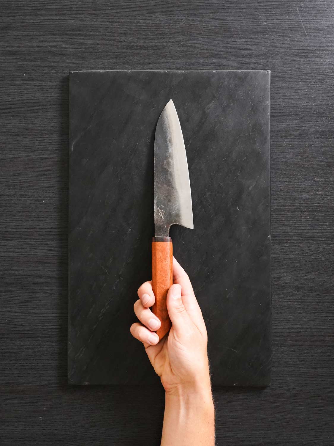 Dry your knife after each use to prevent rust. Oil the carbon steel using a food grade mineral oil. Avoid soaking & never put it in the dishwasher. For full care tips, visit: Knife Care Guide →